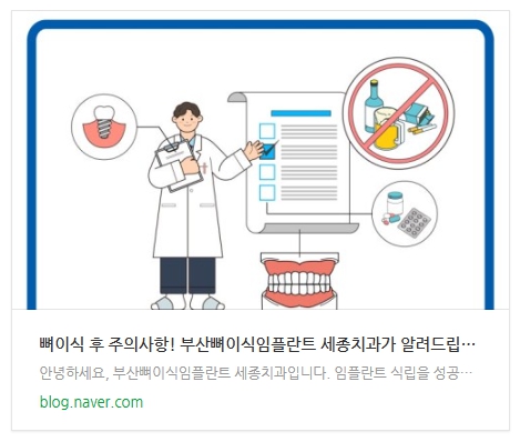 부산임플란트수술 세종치과와 약속한 검진일에 꼭 내원하셔서 확인받으세요.