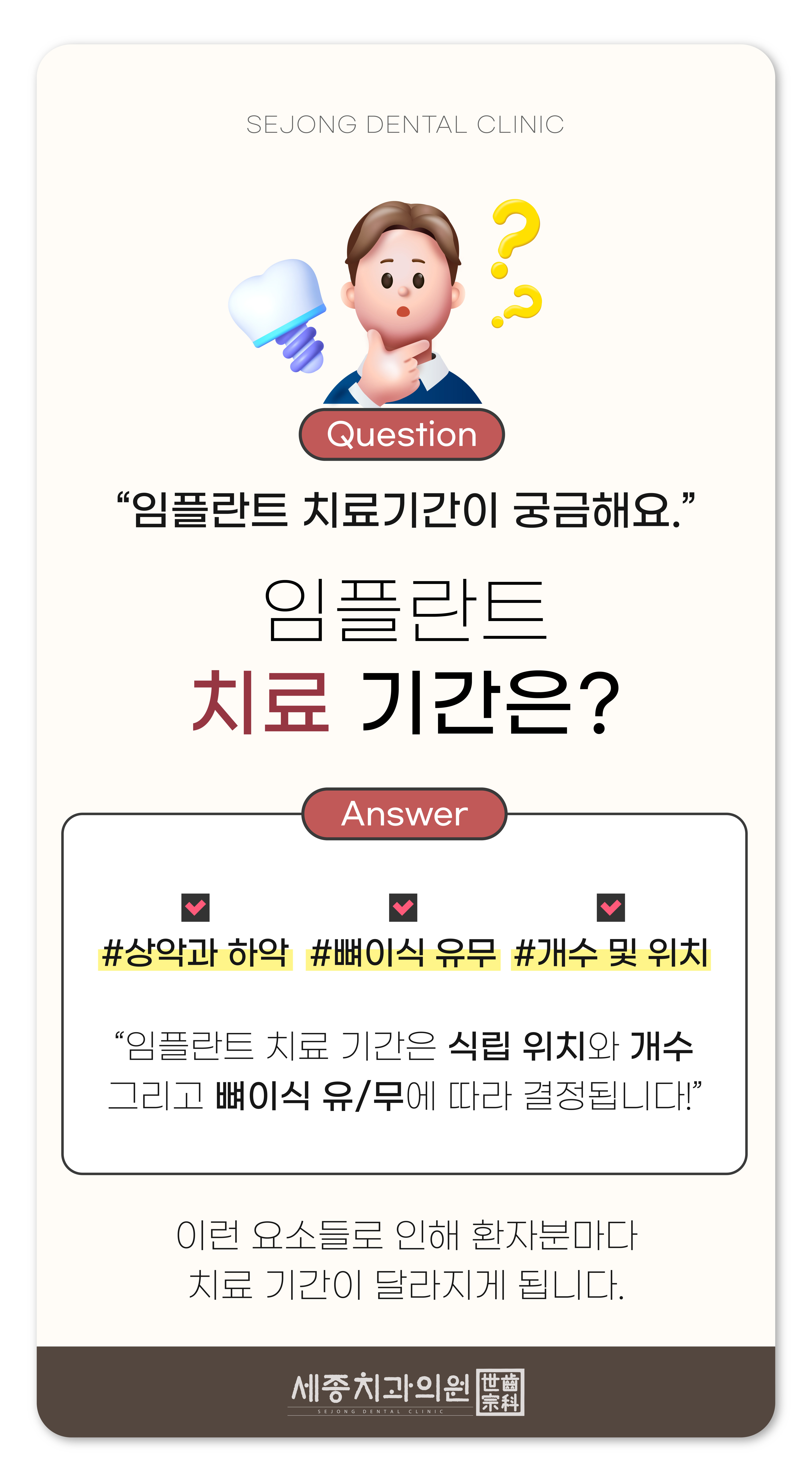치료를 받기 전 구두 상담 시 임플란트 치료 기간을 궁금해하는 분이 많지만 환자의 상태를