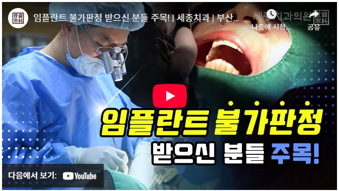 안녕하세요, 부산임플란트재수술 세종치과입니다.