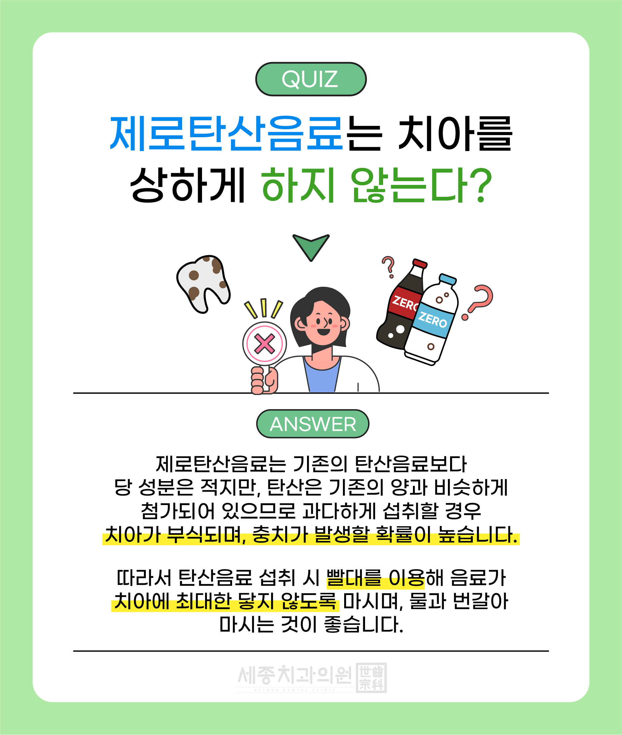 Q. 제로 탄산음료는 치아를 상하게 하지 않는다?