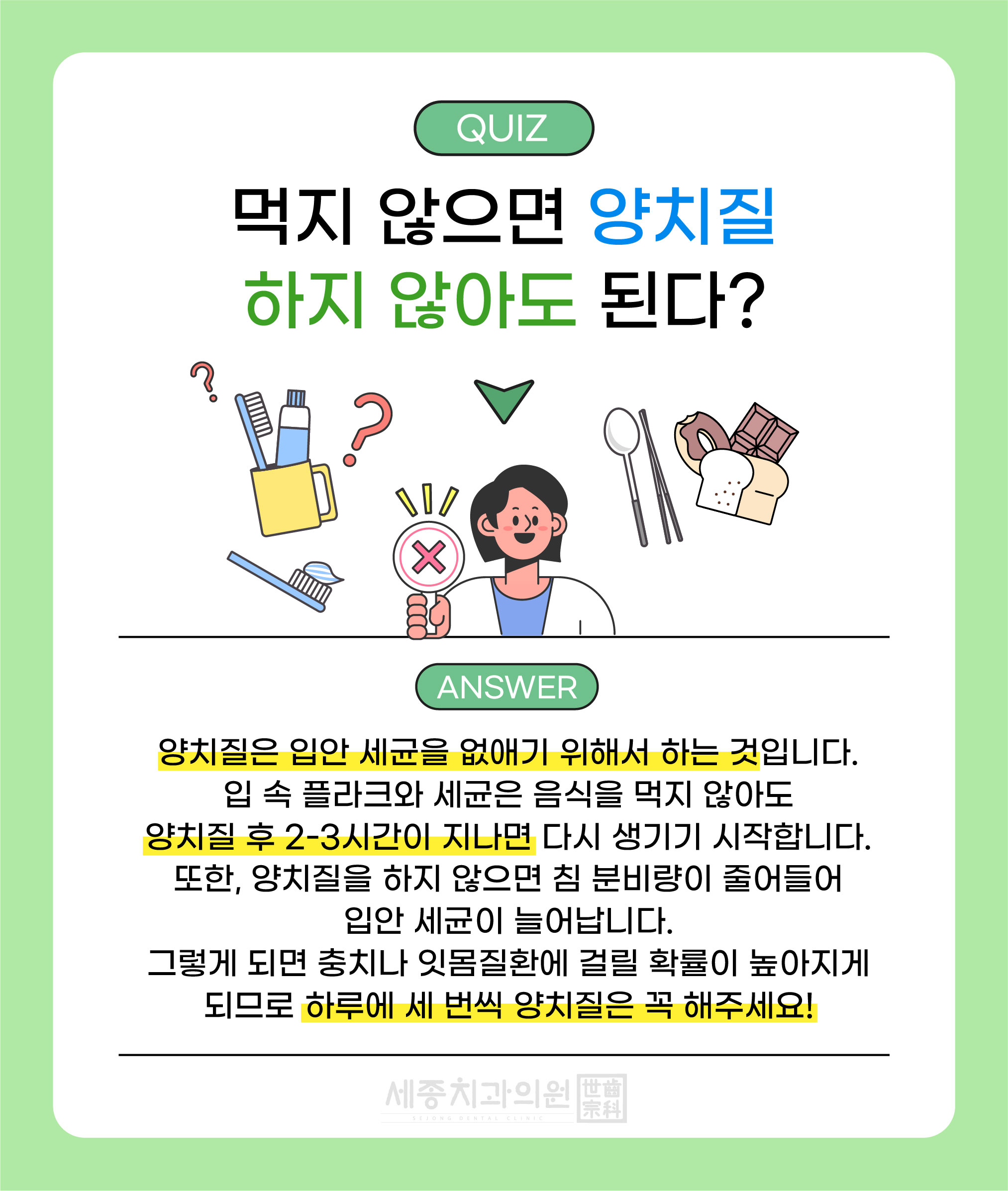 부산수영구치과 세종치과와 함께 간단한 OX 퀴즈를 통해 치아상식을 알아보았는데요!