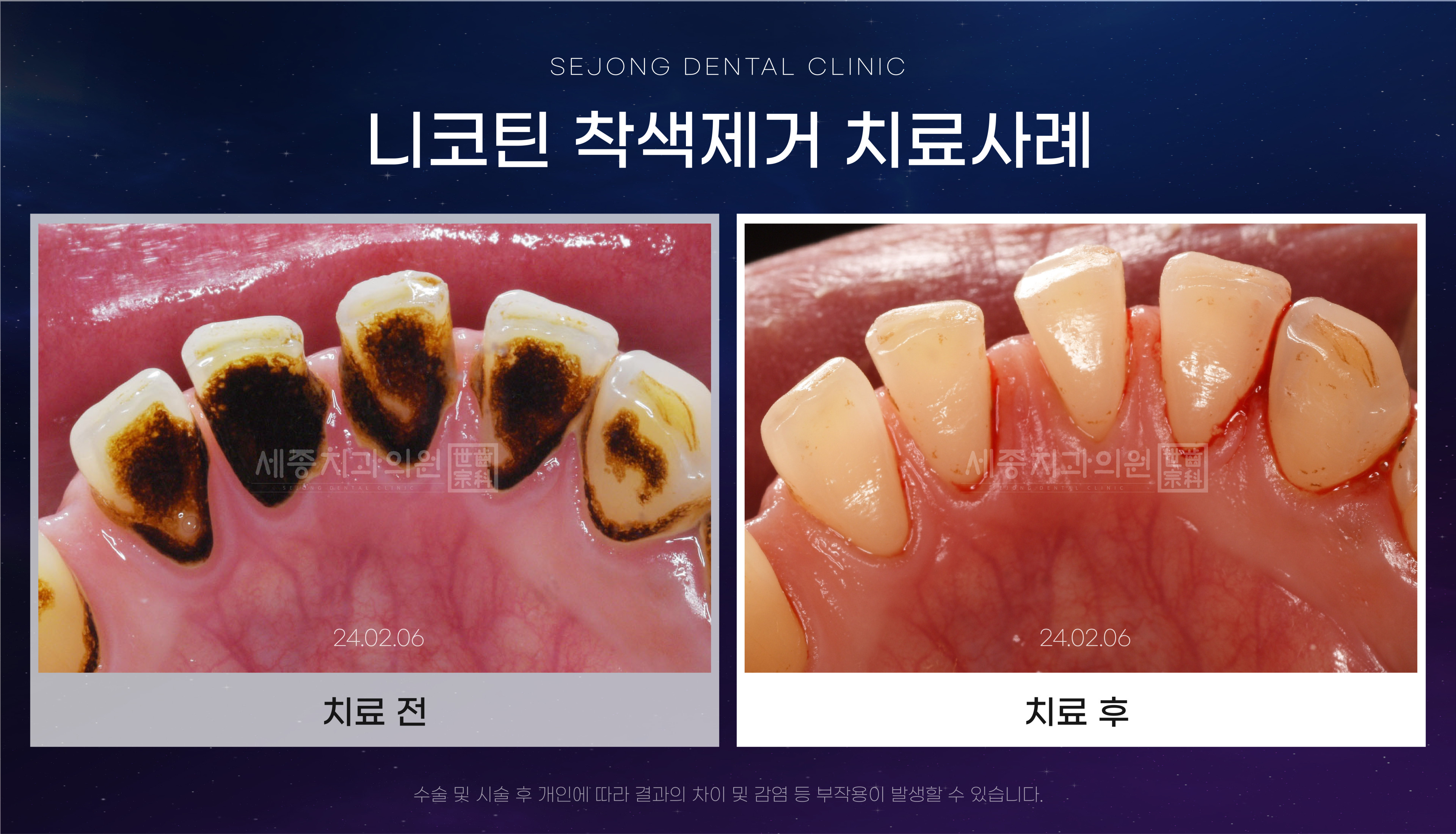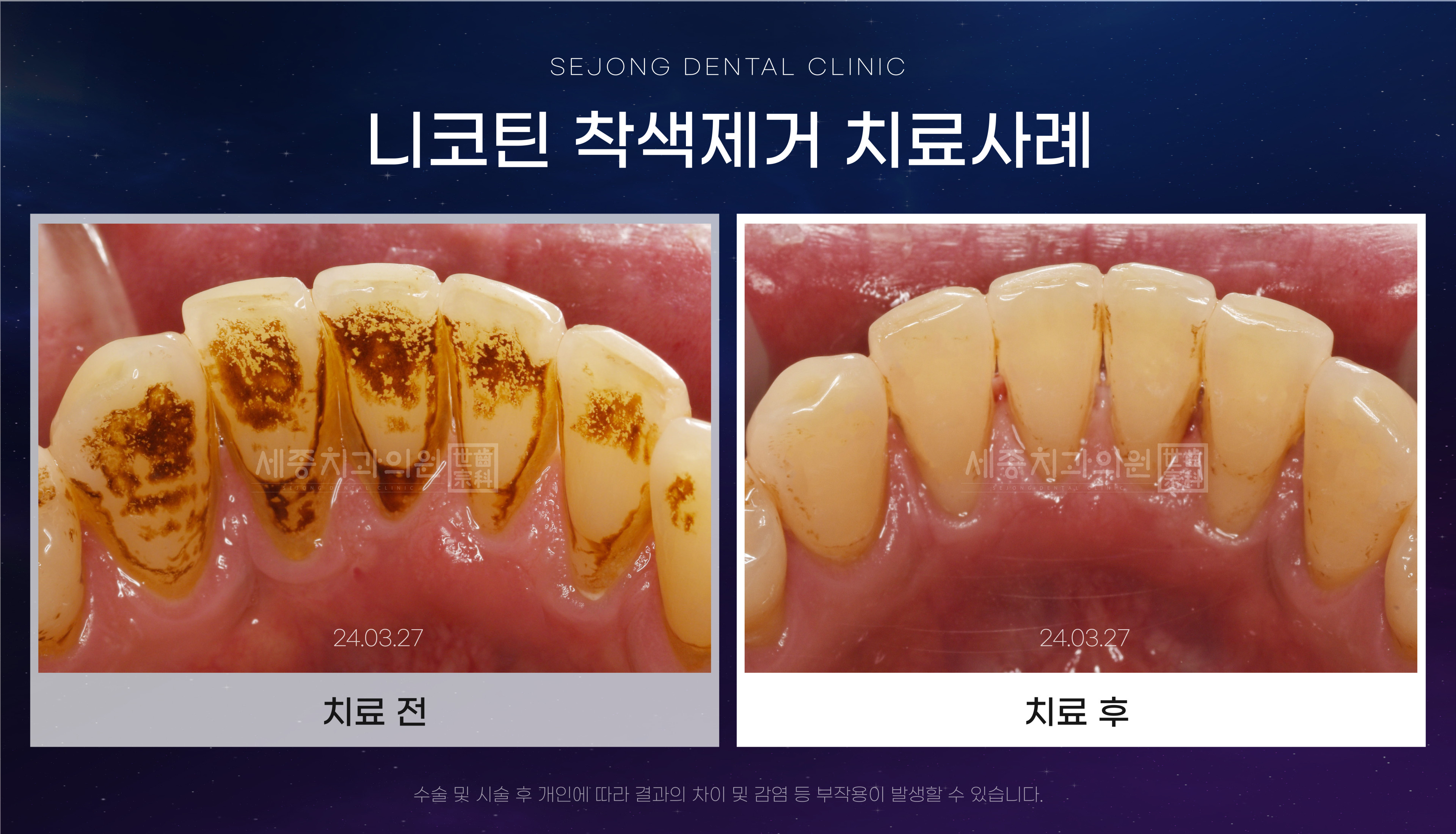 광안리치과 세종치과에서 니코틴 착색 제거 치료받으시면 개운함을 되찾을 수 있습니다.