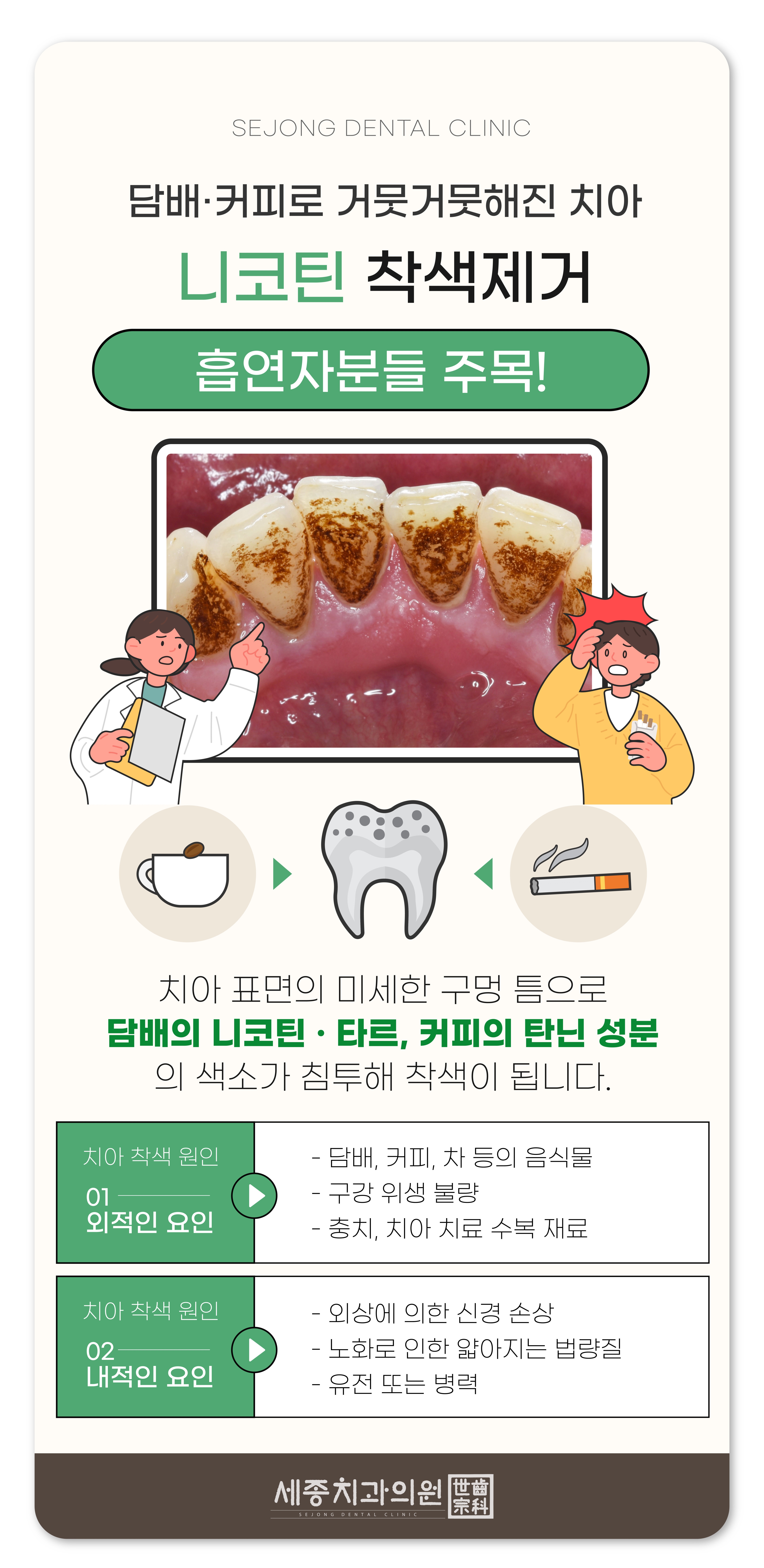 담배 속 유해 성분이 치아 표면에 있는 미세한 구멍에 착색되기 때문에