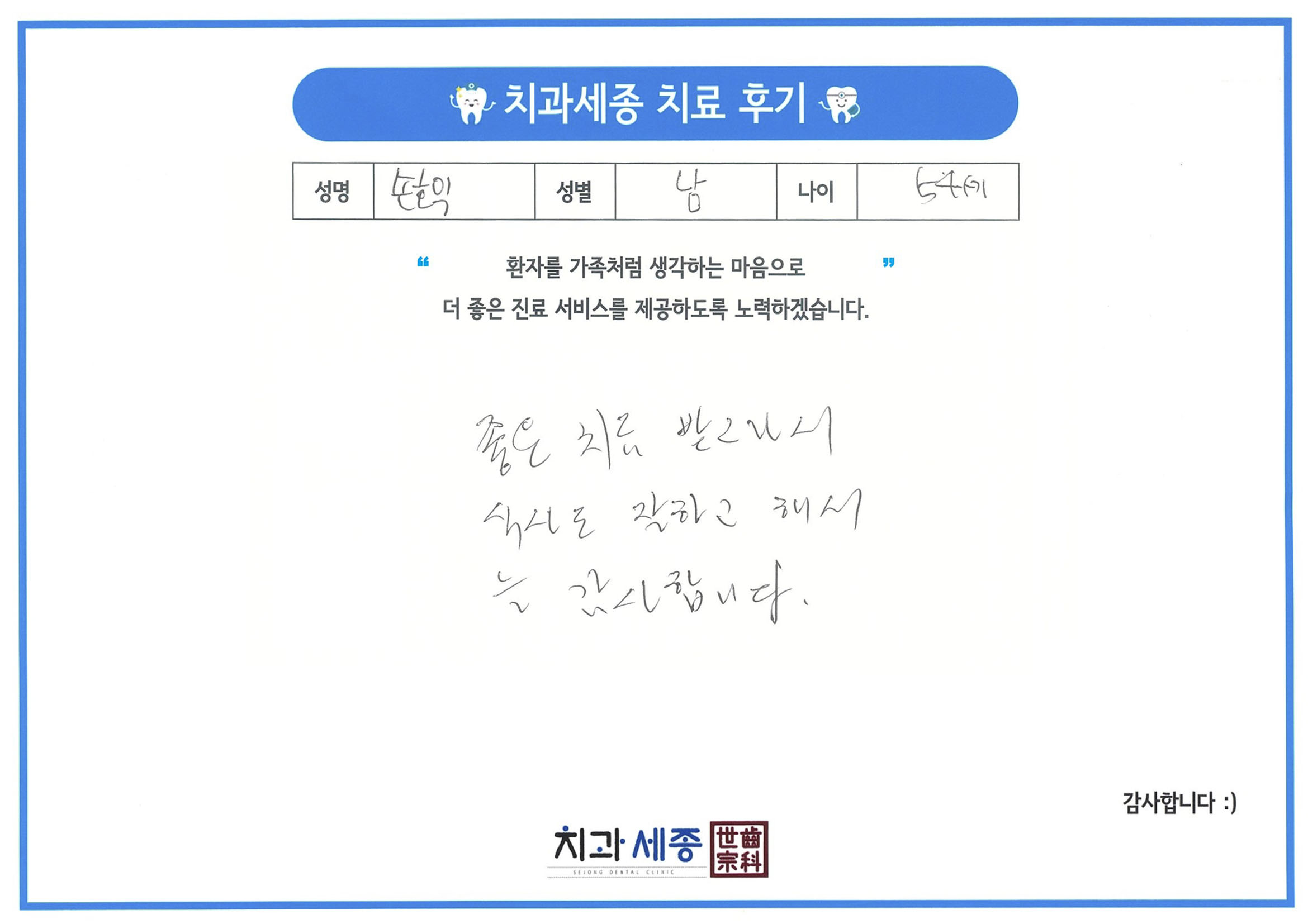 손호익님의 직접 써주신 치료 종결 후기글입니다